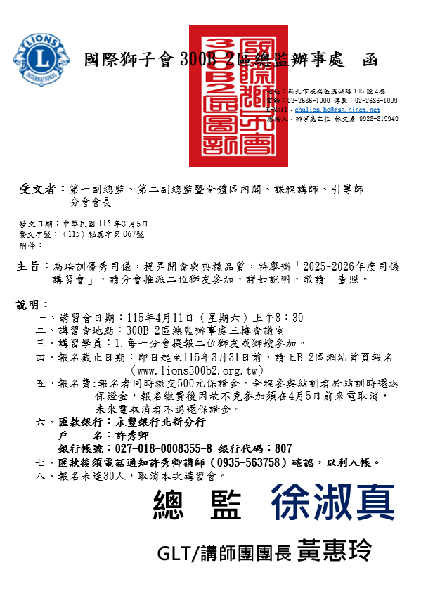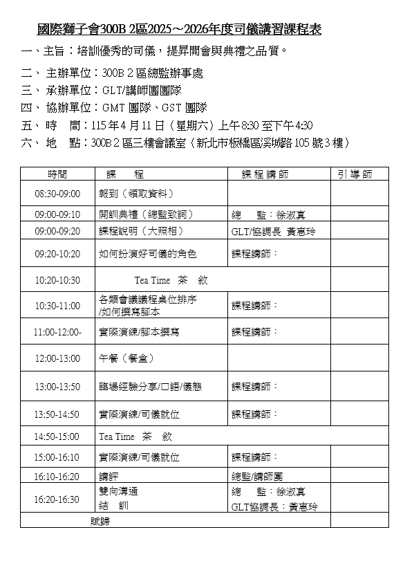 2025~2026年度司儀 講習會